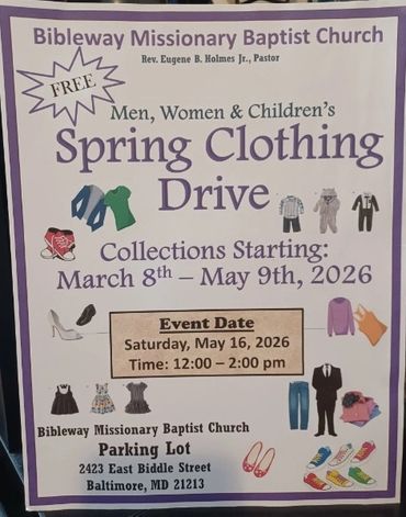 Sun. Mar. 8th Start bringing in clothes for clothes giveaway outreach, May 16th